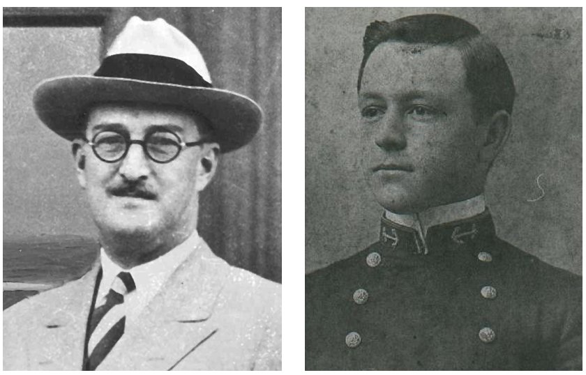 At left, William Edward Boeing, 1881–1956, American aviation pioneer. Image from boeing.com. At right, George Conrad Westervelt, 1879–1956, American aviation pioneer, U.S. Navy engineer. Image from cnac.org.