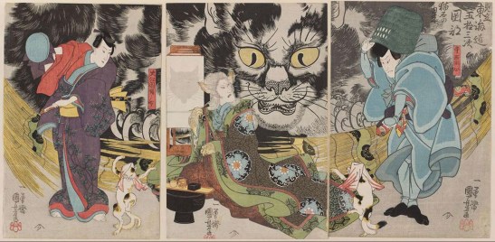 Cats and cat monsters are part of Kabuki lore. Also, though technically against the law, both Kuniyoshi and Kunisada produced erotica, often employing special pen names in these semi-secret ukiyo-e dealings with wealthy and powerful patrons.