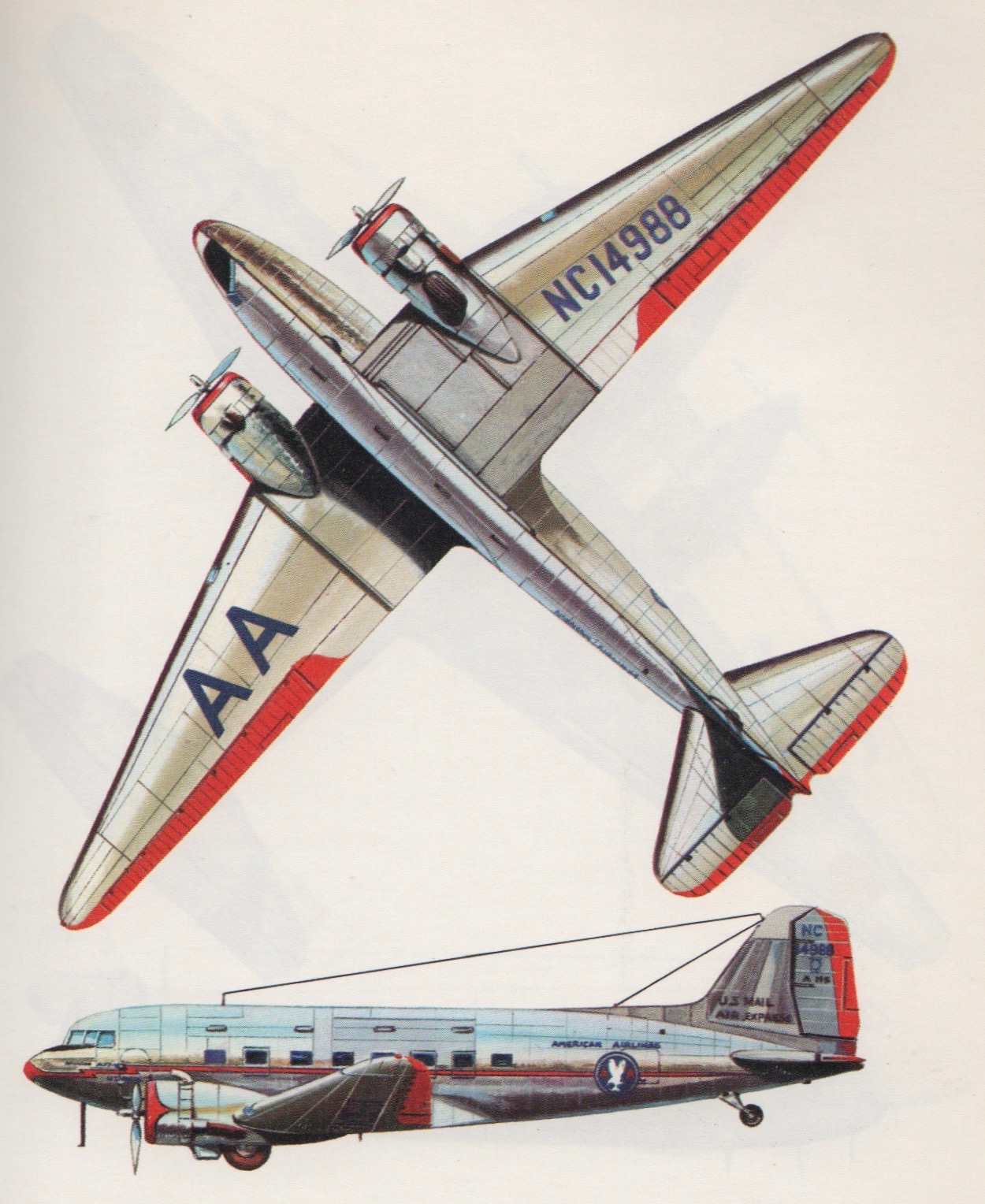 American Airlines DC-3. Image from Airliners Between the Wars 1919-1939, by Kenneth Munson, illustrated by John W. Wood, Blanford Press, 1972.