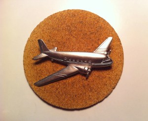 THIS DOUGLAS DC-3 pin was the object of my recent rummaging through the desk. The search was prompted by a cameo appearance of Donald Douglas in a recent item here at SimanaitisSays. This in turn reminded me of having flown years ago in DC-3s.