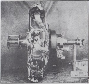 W.O.’s B.R.1 evolved into the B.R.2, displacing 24.9 liters, weighing 475 lb., by 1918 producing 250 hp (0.53 hp/lb.), and the last rotary engine used by the RAF. Later aero engines of this cylinder appearance were radials, not rotaries.