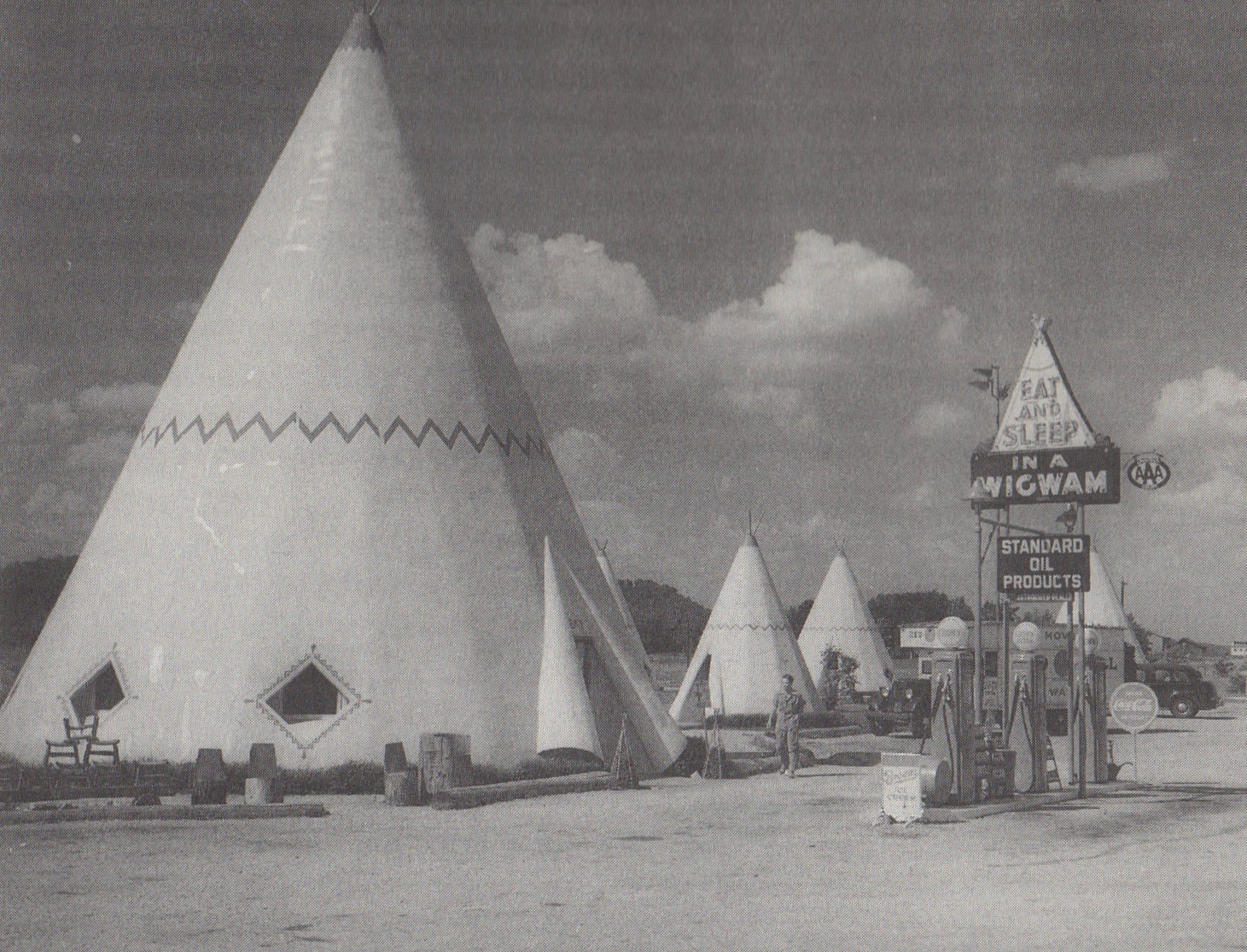 Above, Mission Courts, near Dallas, Texas, 1942. Below, Wigwam Village, near Bardstown, Kentucky, 1940.