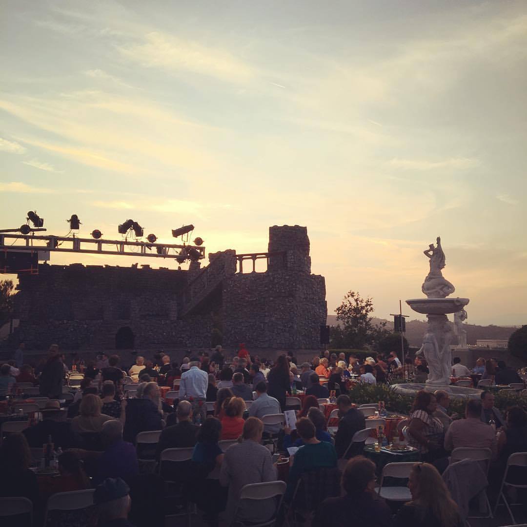 Beautiful setting at the summit of Forest Lawn Glendale for tonight’s #pacificoperaproject production of Lucia di Lammermoor. Wine, cheese, murder and madness! #recipeforagoodtime. This image and comment, and others to follow, from Daughter Suz.
