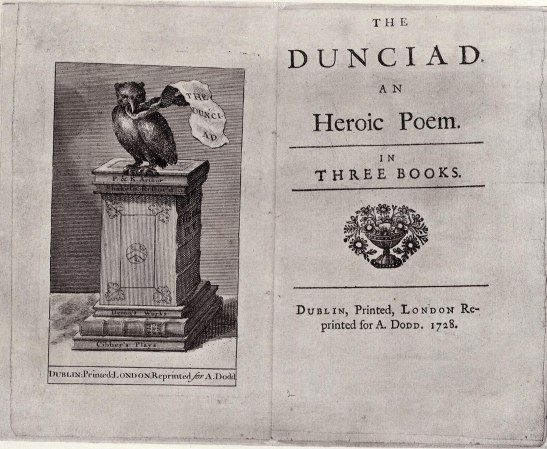 The Dunciad an Heroic Poem in Three Books, by Alexander Pope, Dublin, Printed, London Reprinted for A. Dodd, 1728.