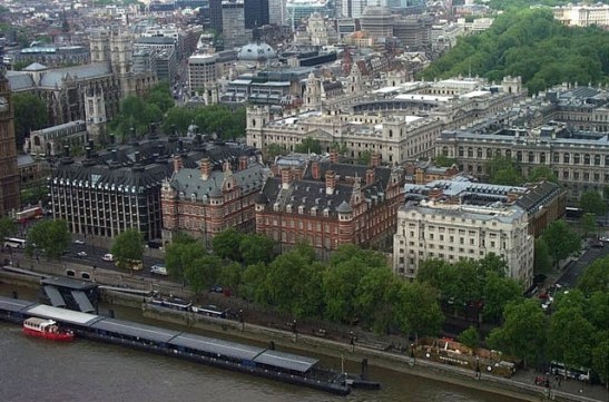 A pre-refurbishment photo of the Curtis Green building (the white one) next to the Norman Shaw Buildings. Image by Bill Henderson.