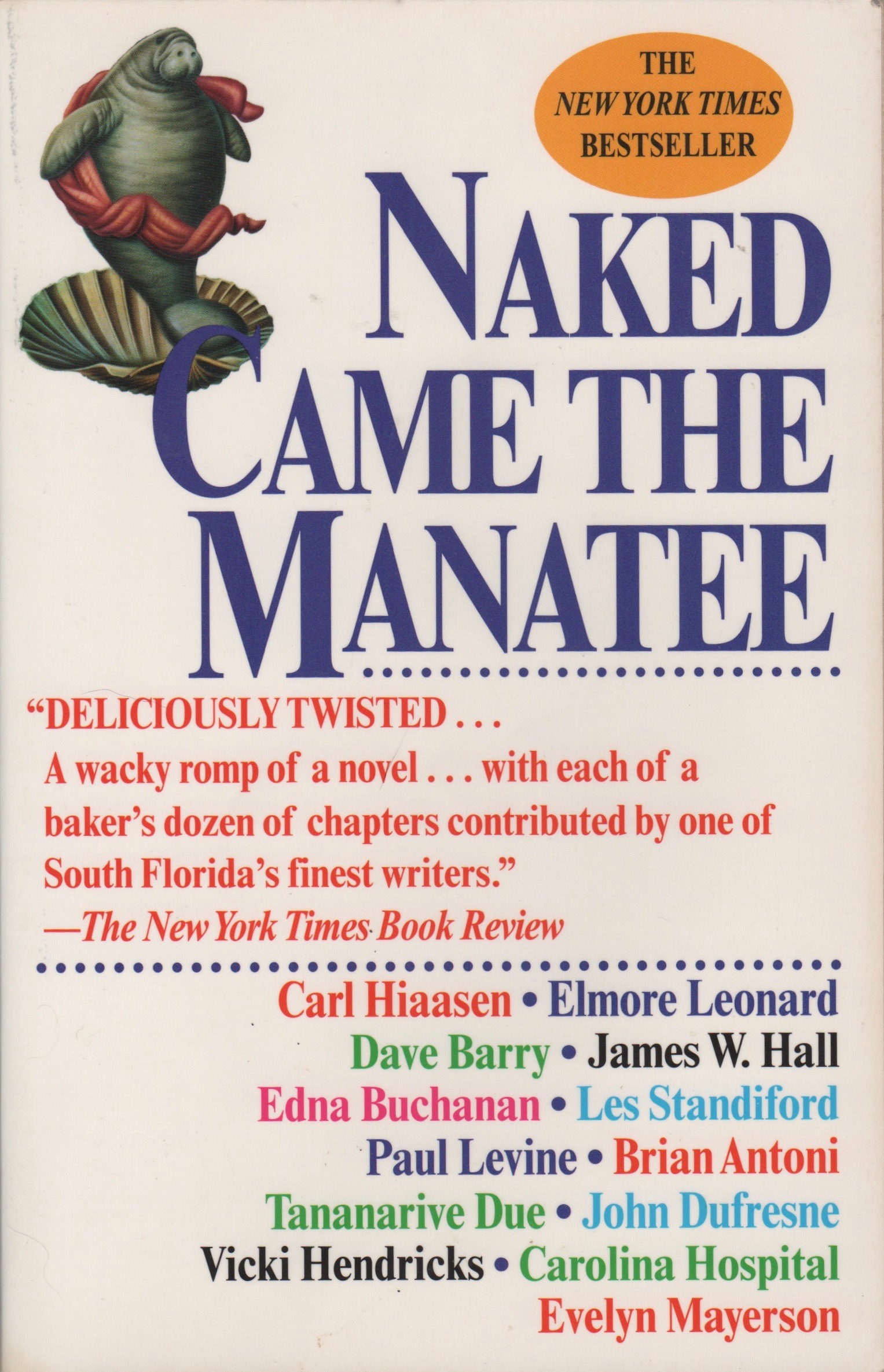 Among other Naked Came the Manatee authors were Elmore Leonard and Carl Hiaasen. It was Hiaasen who had the non-trivial job in his Chapter 13, “The Law of the Jungle,” of tying up all the loose threads (and there are scads).