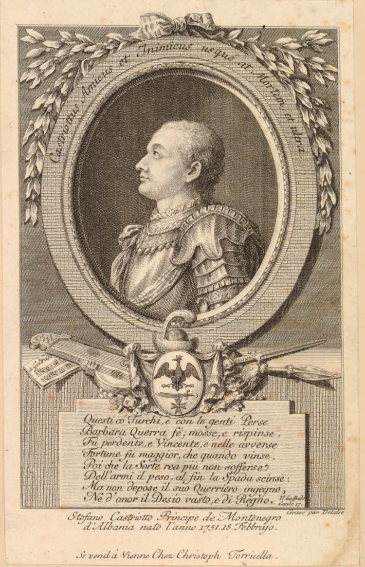 Stefano Zannowich, 1751–1786, Montenegrin Serb writer, royal impersonator, adventurer, pal of Casanova, Catherine the Great, and the Duchess of Kingston. Identified here as Stépan Annibale Prince d’Albanie born 1751.