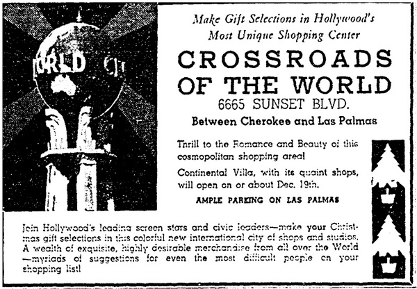 But wait, there’s still more. In 1936, Crawford’s widow built Crossroads of the World, a Los Angeles shopping center renowned for its innovative appearance.
