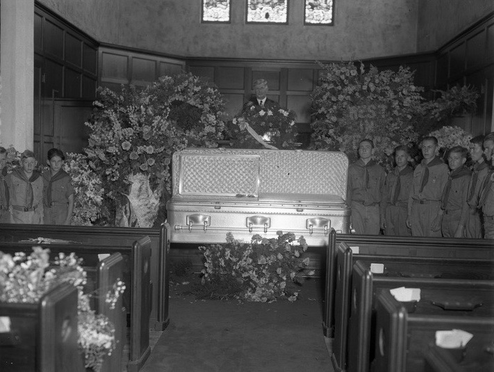 Funeral of Charles H. Crawford, a contingent of Boy Scouts in attendance. Image from jhgraham.com.