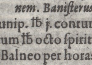 The lb abbreviation as it appeared in printed form in J.C. Barchusen’s Pyrosophia, 1698. Image from Shady Characters.