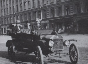 Philip Jordan, 1868–1941, African-American valet, chauffeur and major domo of sorts to U.S. Ambassador David R. Francis. Sharing the back seat of the embassy’s Ford Model T with Ambassador Francis is counsellor J. Butler Wright. Image from Caught in the Revolution.
