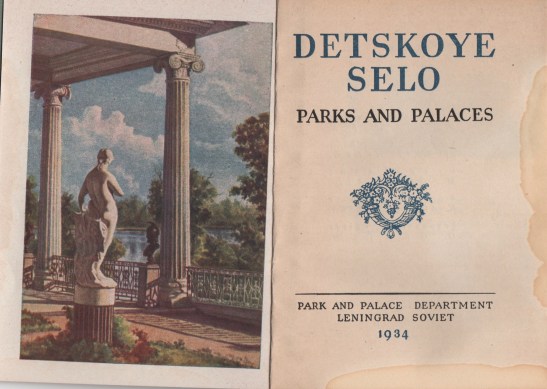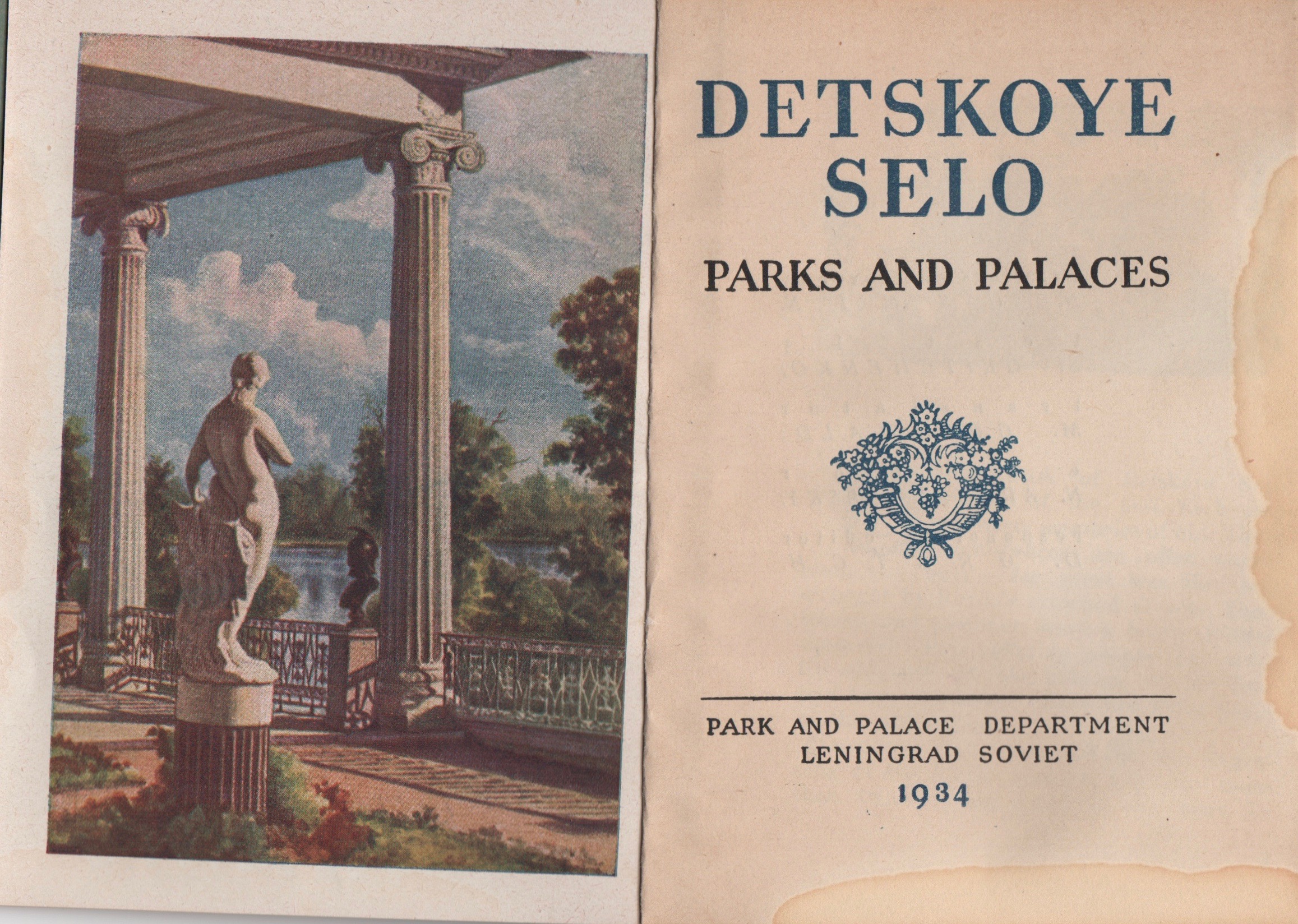 IT MAY seem odd that in 1934 the Leningrad Soviet would have a Park and Palace Department. Indeed, it did and, what’s more, it published a tidy little guidebook in English. Detskoye Selo (Parks and Palaces) makes for interesting contrast, particularly in light of the first-hand views of the Russian Revolution as shared by Phil Jordan, valet, chauffeur, and major domo to the American ambassador in Petrograd.
