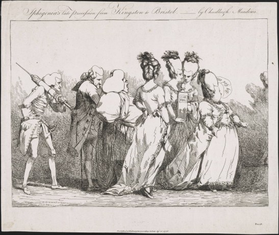 Elizabeth Chudleigh, eighteenth-century con woman, was the subject of this print.
