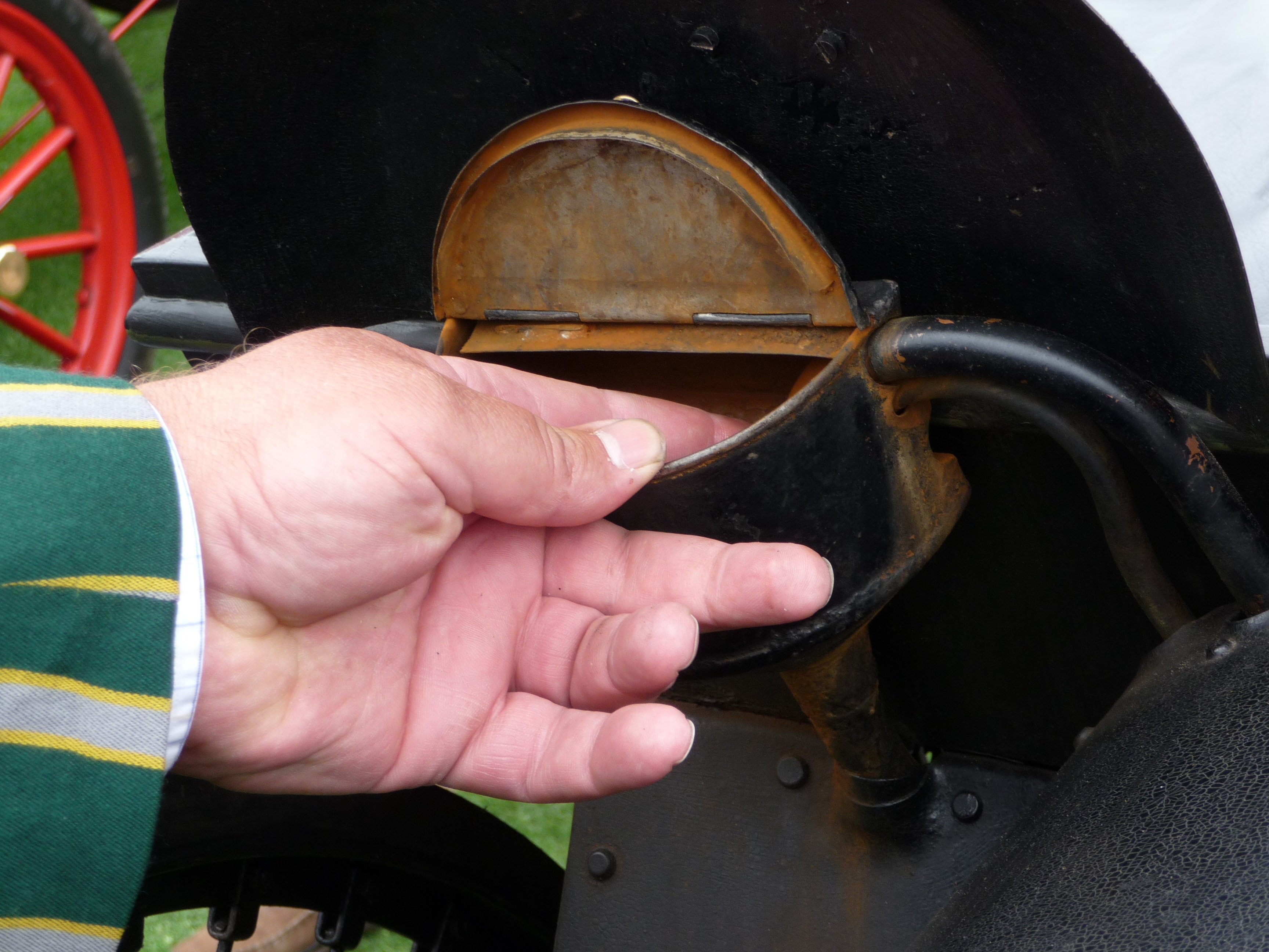 Hexane, akin to dry-cleaning fluid, is the Type 3’s optimal fuel. The engine originally had hot-tube ignition, with a constantly burning open flame. To mitigate fire hazard, the Wards, who use their old cars, changed this to an electric ignition.