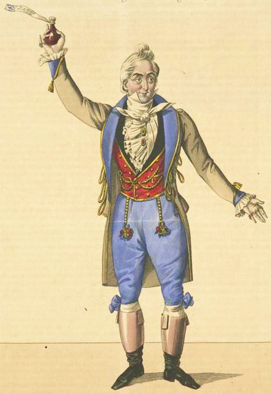 My favorite charlatan is Dulcamara, the quack patent medicine purveyor in Gaetano Donizetti’s L’Elisir d’Amore, The Elixir of Love. Dulcamara’s love potion, actually a bottle of cheap wine, gives shy Nemorino the confidence to woo wealthy landowner Adina.