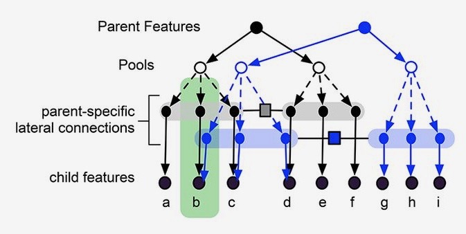 A four-level RCN representation of the letter “A.” Compare this to the illustration above. This and the following images from “A Generative Vision Model That Trains with High Data Efficiency and Breaks Text-based CAPTCHAs,” D. George et al, Science, October 26, 2017.