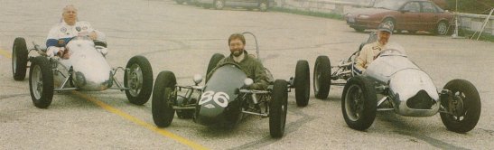 VSCCA’s Mount Equinox Hill Climb, 1995: At the top of the hill, from right to left, David Cooper (no relation) in his Cooper Mark VII, Mark O’Brien in a Kieft, and my guest drive of David’s Cooper Mark IV.