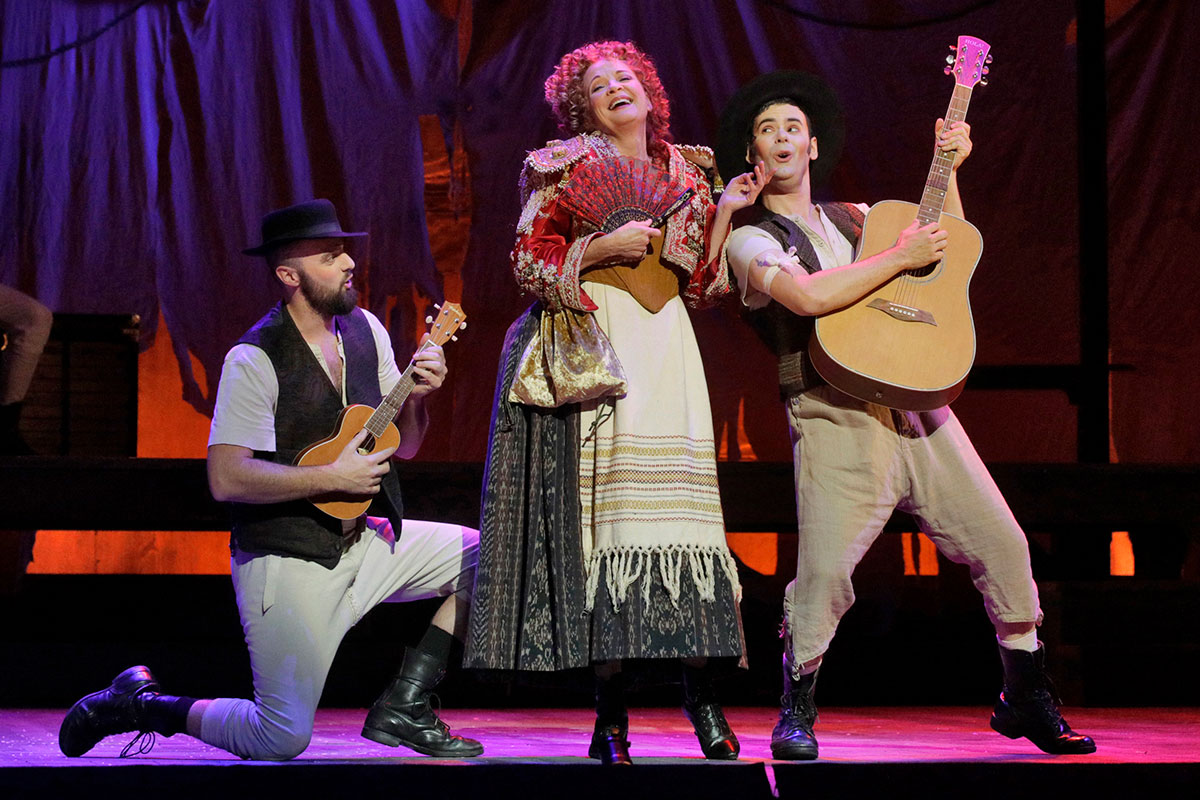 Singing “Oh, Happy We,” the two recognize early on that they’re a perfect match. Candide: “Soon, when we feel we can afford it,/We’ll build a modest little farm.” Cunégonde: “We’ll buy a yacht and live aboard it,/Rolling in luxury and stylish charm.” Candide: “Soon there’ll be little ones beside us;/We’ll have a sweet Westphalian home.” Cunégonde: “Somehow we’ll grow as rich as Midas;/We’ll live in Paris when we’re not in Rome.”