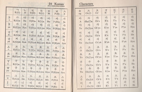 Speak Korean with Me includes a chart of Hongul’s basic 24 characters together with their combinations. Notice, for instance, ㅏ, A, combines with ㄴ, N, to form another character 나, Na. Recognizing these pairings is part of the challenge/fun of a game that I devised working backwards from Hongul to Song’s phonetic renderings.