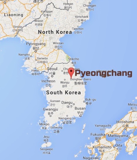PyeongChang is in eastern mountains of South Korea. Image from the Republic of Korea of its Alpensia Resort.