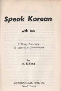 WHAT WITH the PyeongChang Winter Olympics and all, I thought it’s about time that I learn some Korean. And, wouldn’t you know, there’s a book on my shelf titled Speak Korean with Me, by M.E. Song, Songmoon-Kak Publ. Co., Seoul, 1966.