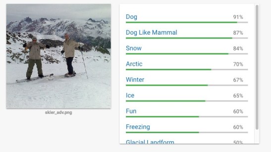 I see two skiers. How about you? Shown are Google Cloud Vision’s perceptions. Image from Wired, March 8, 2018.