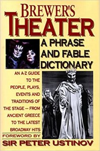 Along with my usual Internet sleuthing, Brewer’s Theater, A Phrase and Fable Dictionary, An A-Z Guide to the People, Plays, Events, and Traditions of the Stage—From Ancient Greece to the Latest Broadway Hits is an excellent and entertaining source. Sir Peter Ustinov sets the tone in this book’s foreward: “For once I am grateful that I cannot understand ancient Greek. I thought, however, that I caught the word Aristophanes, enunciated with a precision suggesting derision. That old argument again, about the intrinsic superiority of tragedy over comedy, of the noble tear over the impolite, plebeian guffaw?”