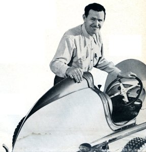 An eclectic setting: Mercury-powered Kurtis passes supercharged MG on Carrell Speedway, as pictured in R&T, April 1953.