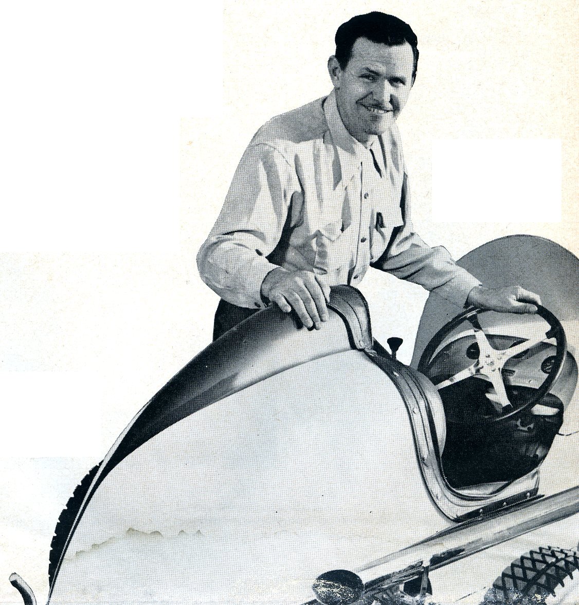 “Frank Kurtis points out the special radiator…” This and the following images from R&T, October 1953.