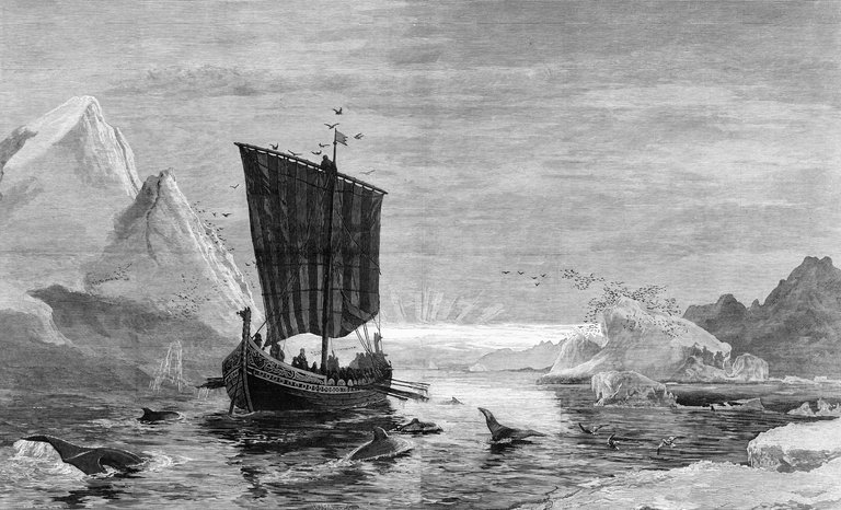 Erik the Red arrives in Greenland in the 10th century. Image from The New York Times, April 6, 2018.