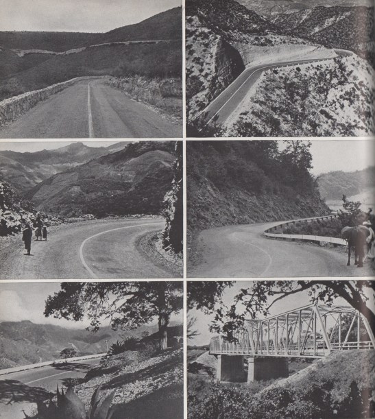 “Just about half this so-called ‘Inter-American Highway’ runs through Mexico; the other half crosses Guatemala, Salvador, Honduras, Nicaragua, Costa Rica, and the northern half of Panama. On this drive of about the same distance as from Boston to San Francisco, one passes through arid deserts, dense tropical jungles, over lofty mountain passes with breath-taking views, past active volcanoes, and into the shadow of perpetually snow-capped mountain peaks three miles high.”
