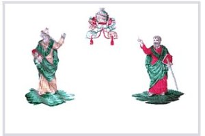Flag of the Papal Navy, the papal emblem between Sts. Peter and Paul. Image from crwflags.com.