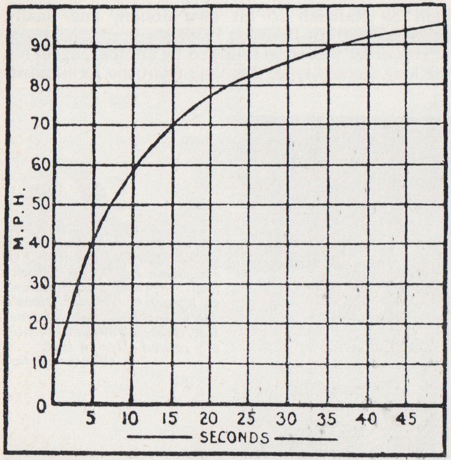 Potent performance for the era! Zero to 60 in 10 seconds, 70 mph in 15 seconds, a top speed just a tad over “the magic 100 mph.” Data from Motor Sport, August 1935.