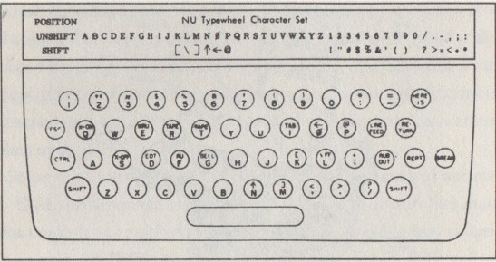 Keyboard of an ASR-33 teleprinter, with P/@.