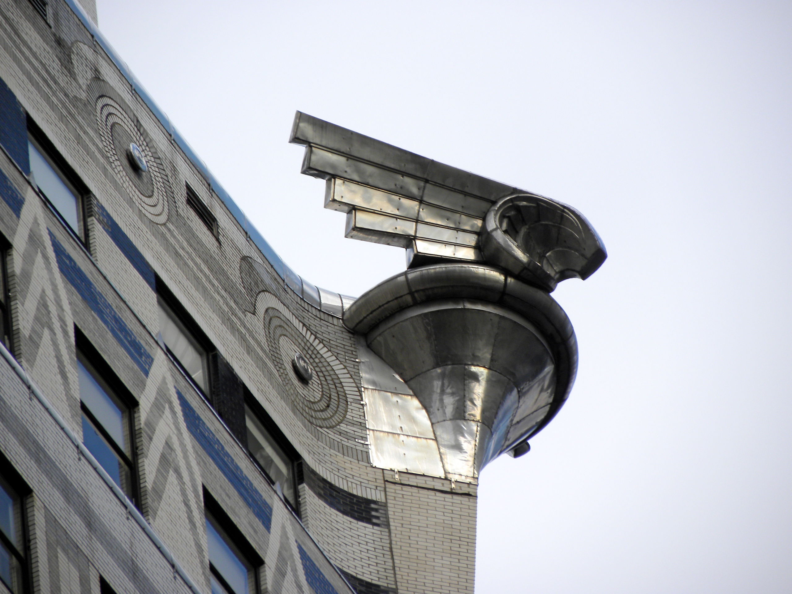The Chrysler Building’s architectural ornament appears to be resting on a circular base, like a radiator cap, and thus might be more accurately termed a mascot.