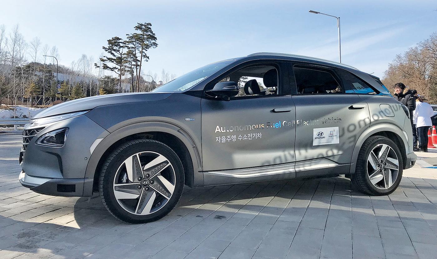 This Hyundai Nexo fuel-cell crossover, driven around the Olympic Village at South Korea’s Winter Games earlier this year, was equipped with a Level 4 system, one level short of all-condition autonomy. A non-autonomous fuel-cell-powered Nexo comes to the U.S. in the fourth quarter 2018.