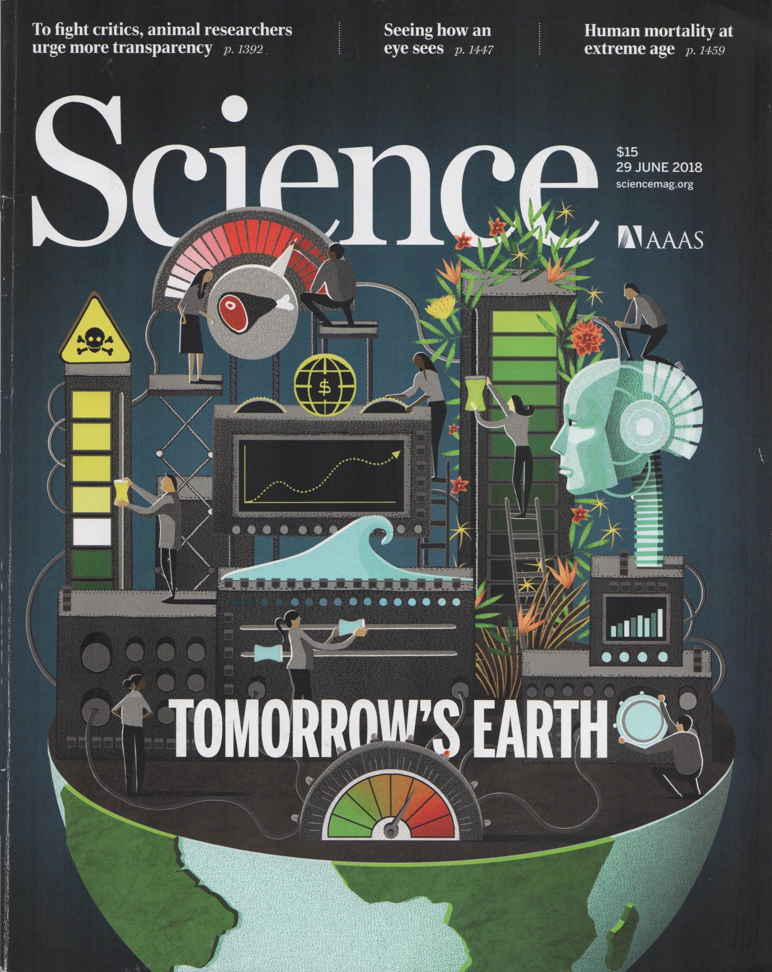 Science magazine, published weekly by the American Association for the Advancement of Science. Cover image from June 29, 2018.