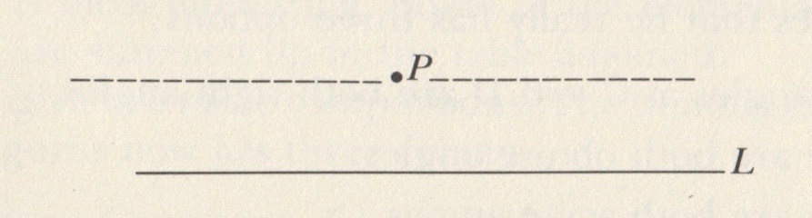 5. Given a line L and a point P not on L, then through P there exists one and only one line parallel to L.