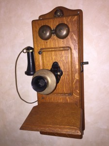 An antique Kellogg magneto-powered crank wall phone with separate earpiece to “hang up.” Image from Collectors Weekly.