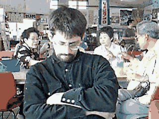 “Shôriya Aragôrô deep in thought,” from a short movie directed by Simon de Meguro, Kinkazan Island, “some years ago.” Image and quotes from Kabuki 21.