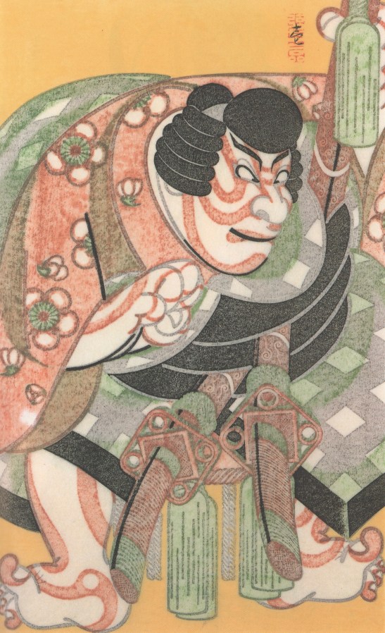 My source of prints shown here is the book Tsuruya Kokei: Kabuki Actor Prints, celebrating the 100th anniversary of Tokyo’s Kabukiza Theatre. Kokei, whose real name is Mitsui Gen, is a woodblock print artist born in 1946. Information on the particular plays cited here comes from Shôriya Aragôrô’s Kabuki 21.