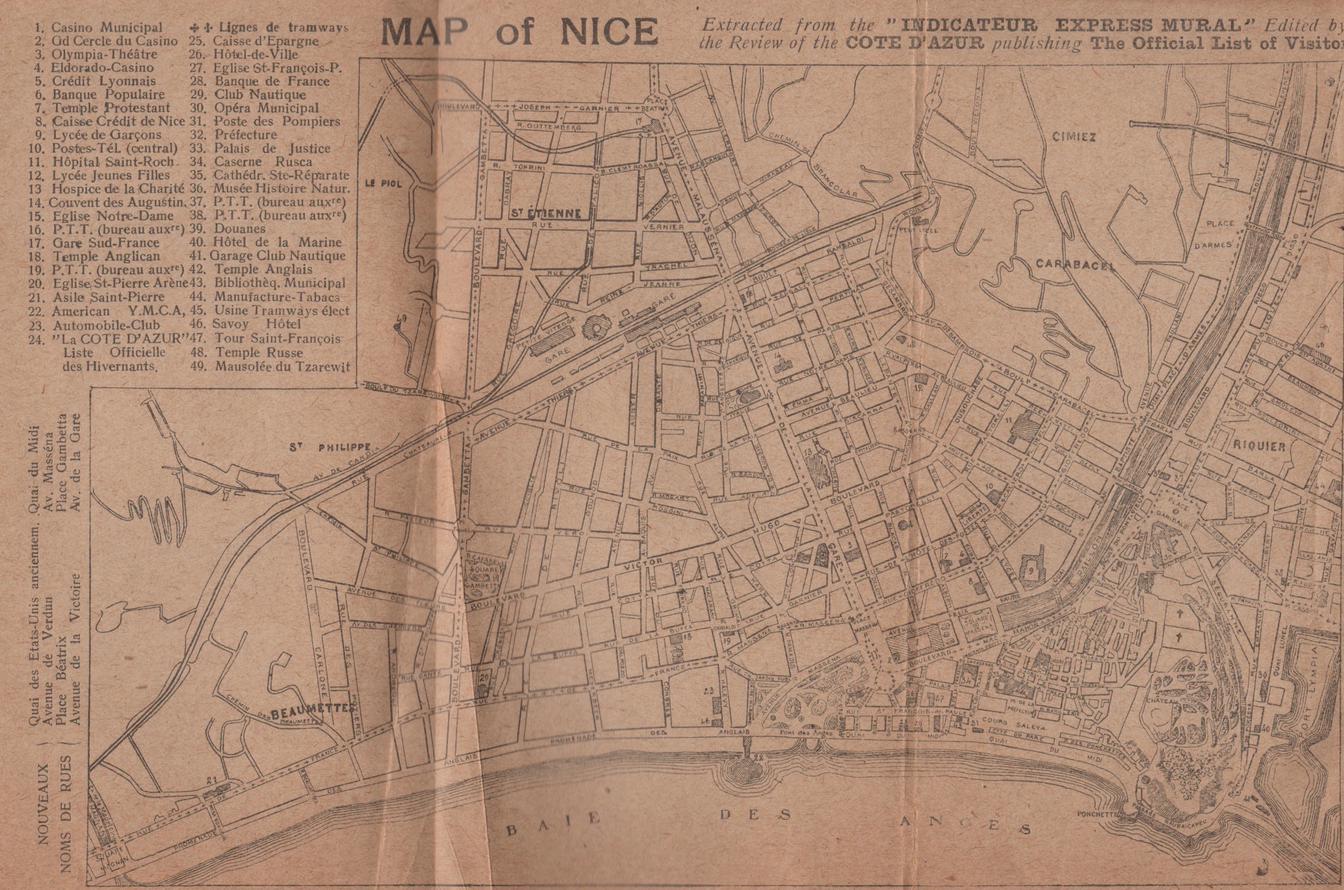 In what follows, based on these clues I concoct a hypothetical itinerary for the first owner(s) of my Touristic Guide to Nice.