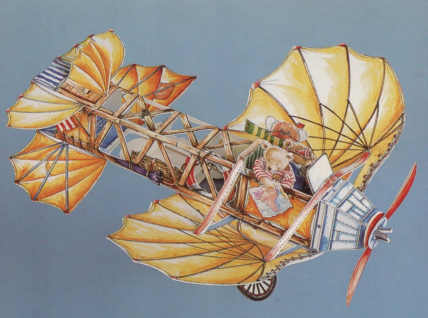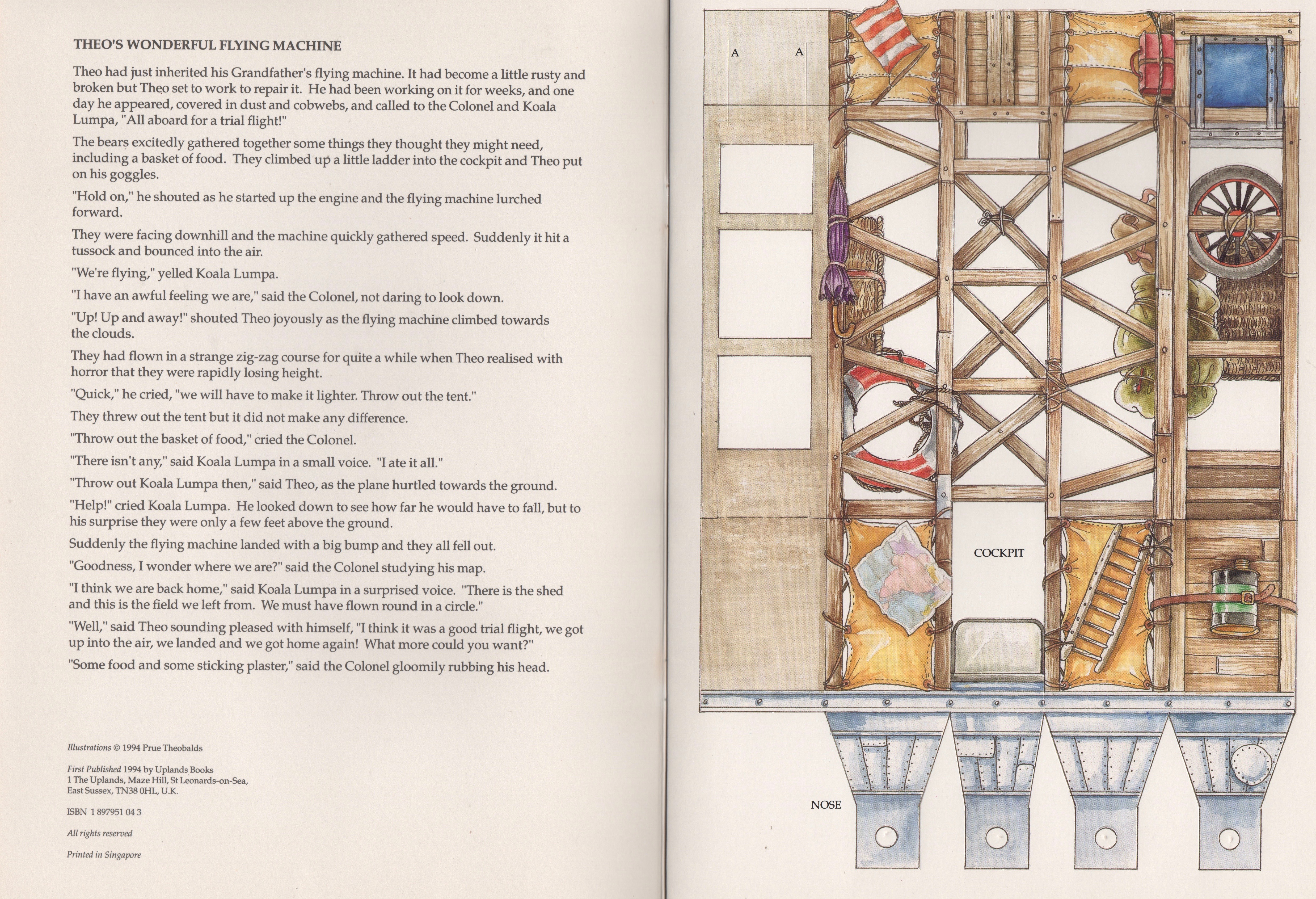 Theo’s Wonderful Flying Machine: Press-out and Play, by Prue Theobalds, author and illustrator, Uplands Books, 1996.
