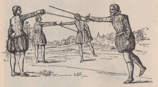 Hamlet was popular at our junior high school because of all the knife fights. Engraving from Academie de l’Épée, Girard Thibaust, 1628.