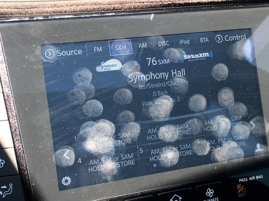 After no more than setting my SiriusXM preferences and synching my iPhone (both, easy-peasy), under certain reflections the QX50’s touchscreen looked like a forensic expert’s dusting of a crime-scene brandy goblet.