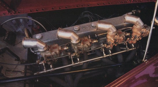 Four Weber 30 DR 2 carburetors provide fuel and air; a Marelli distributor, the spark. An Auto Avio-designed crankshaft and single overhead camshaft completed the diminutive straight eight. The gearbox was from Fiat, with cogs replaced by those of Auto Avio fabrication.