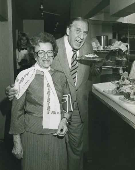 Henny Youngman and wife Sadie Cohen at Jacqueline’s Restaurant, New York City, 1982. Image from anothereyeopens.com.