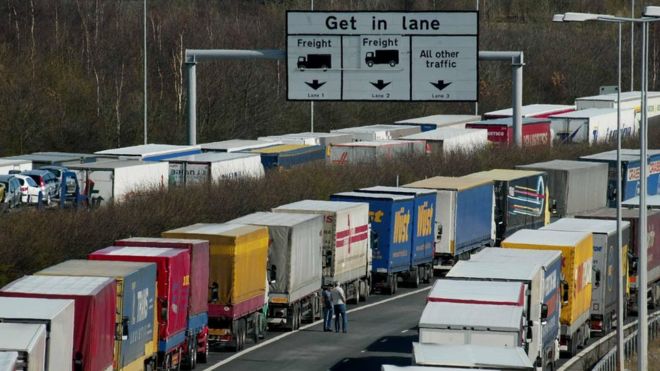 A 29-Mile Queue. A great deal of Britain’s EU trade has traveled through Dover. “Currently, as few as two lorries out of 180 are checked. Research suggests that an extra two minutes spent at the border by each vehicle could more than triple the queues on nearby major roads to 29 miles, resulting in almost five-hour delays.”