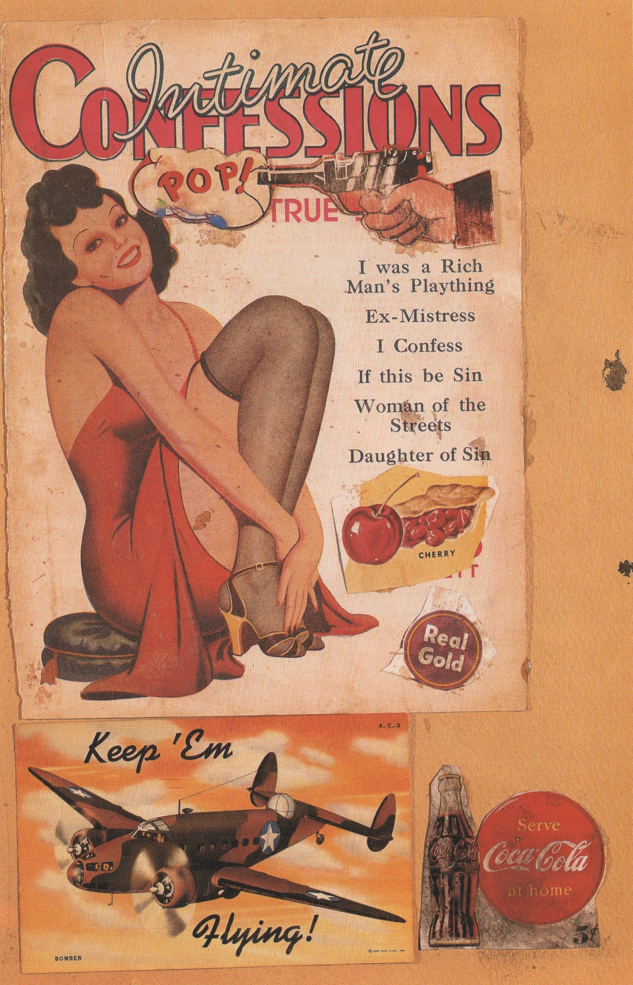 In 1947–1949, Scottish artist Eduardo Paolozzi, 1924–2005, assembled collages from scraps of American magazines and newspapers. I Was a Rich Man’s Plaything, 1947, was one of the earliest pieces to employ the word “POP” in juxtaposing exaggerated sexuality, high technology, and familiar consumerism.