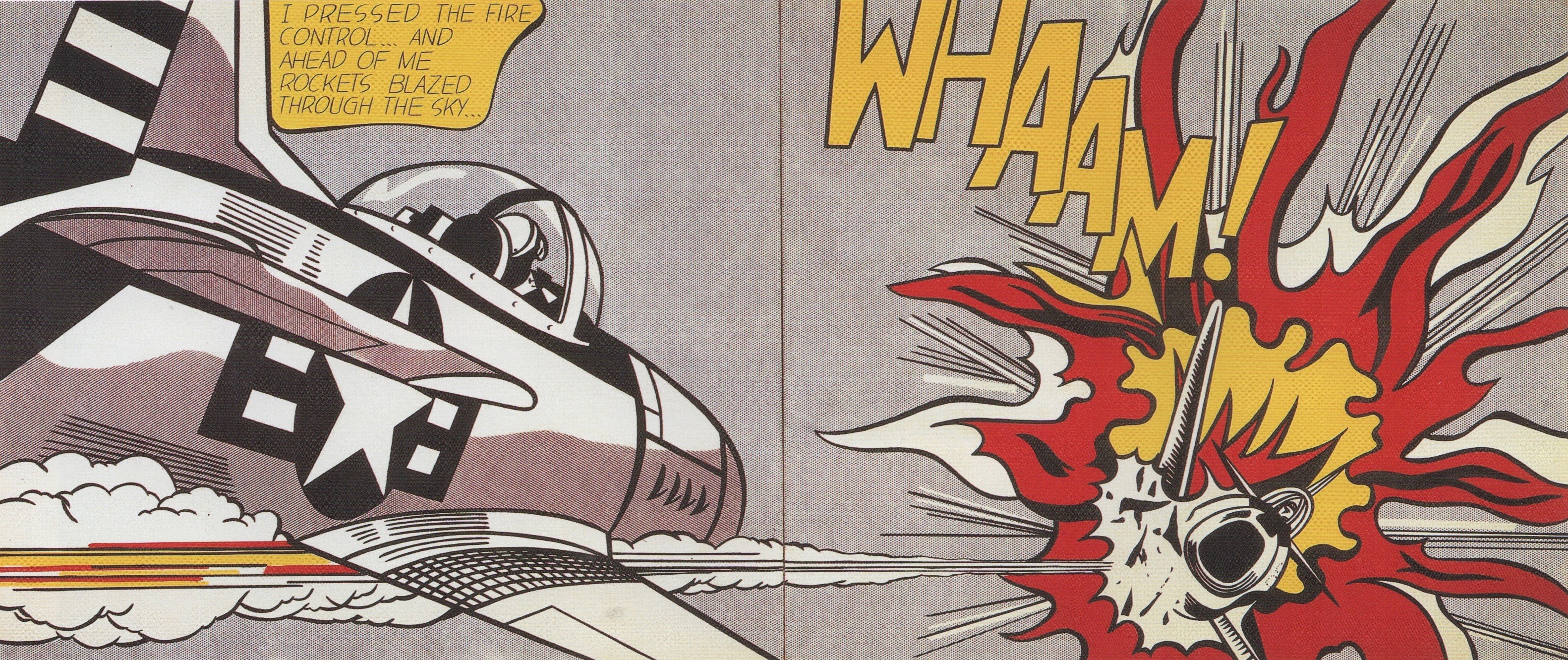 Whaam!, by Roy Lichtenstein, 1963, oil and magna on canvas, 68.0 in. x 160.0 in. Tate Galley, London.